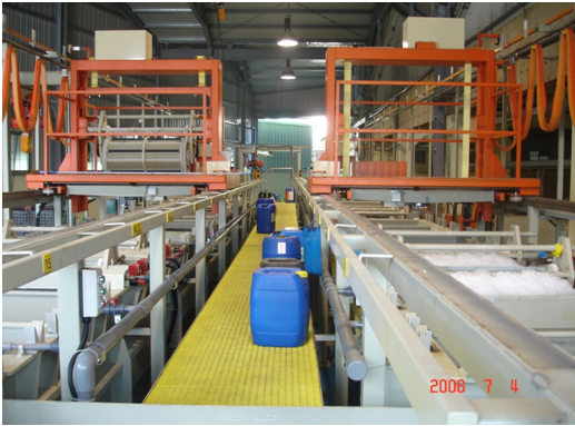 ガントリー式亜鉛ニッケル合金ラックめっき生産設備